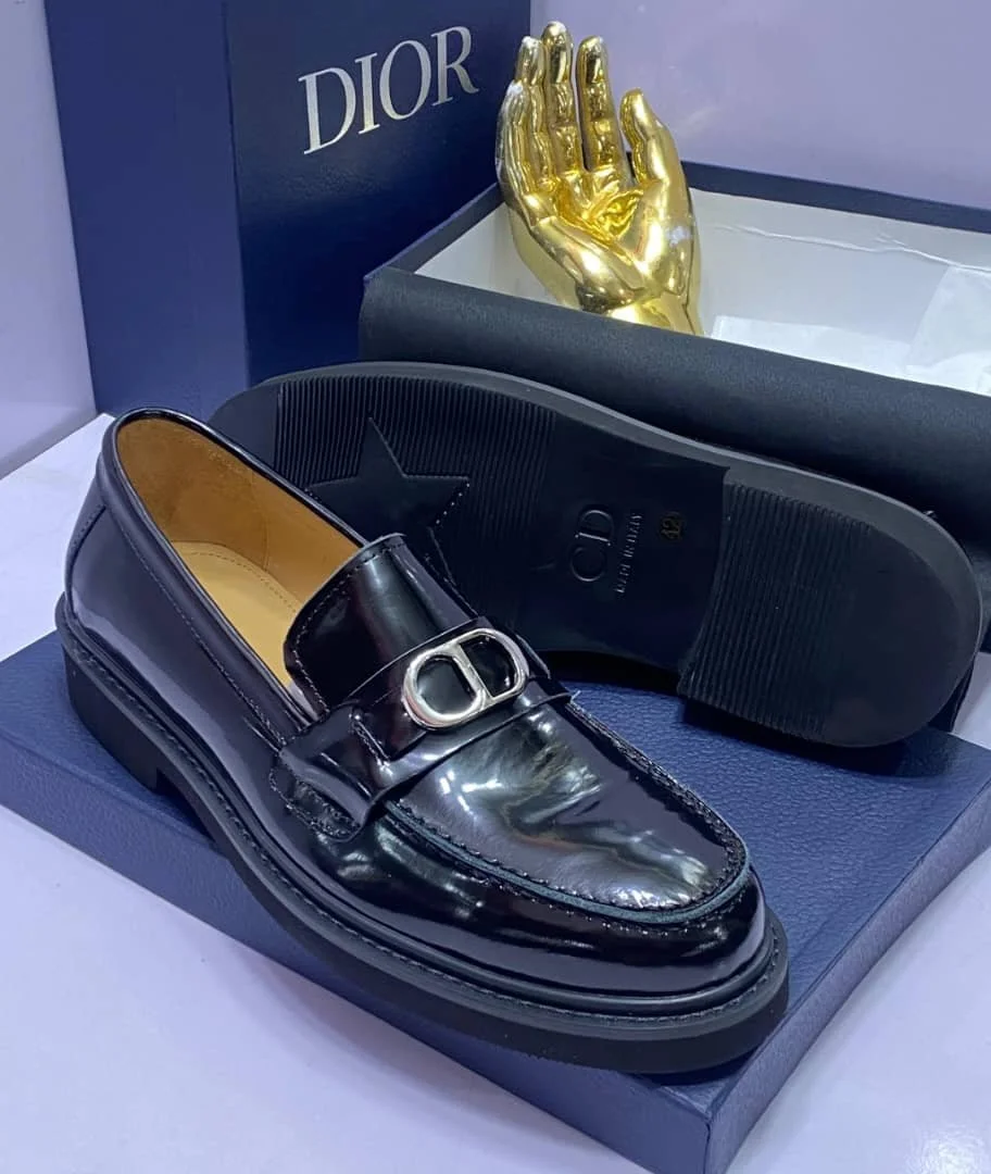 Christian Dior Loafer Black Leather with CD Christian Dior logo buckle silver evening fashion designer outerwear