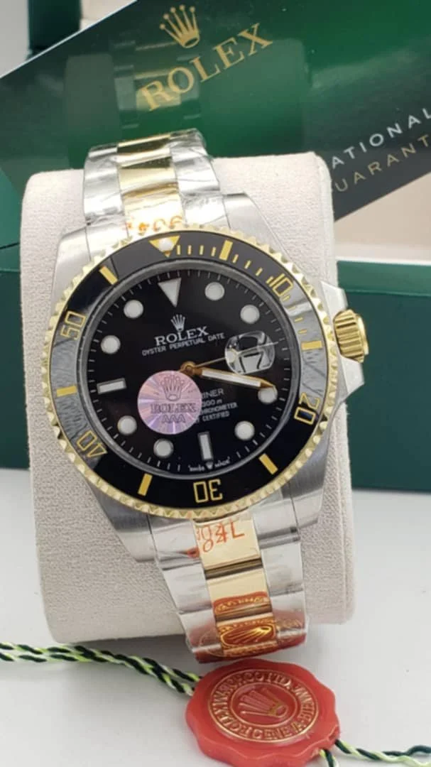 Rolex Oyster Perpetual Date Available gold. silver links black face authentic designer wrist watch. Fitting available upon purchase