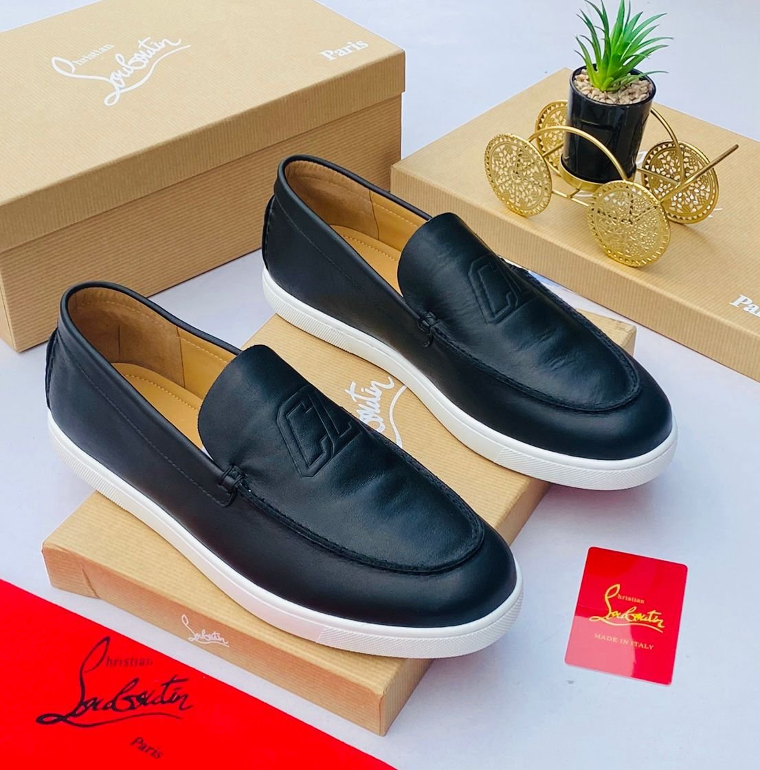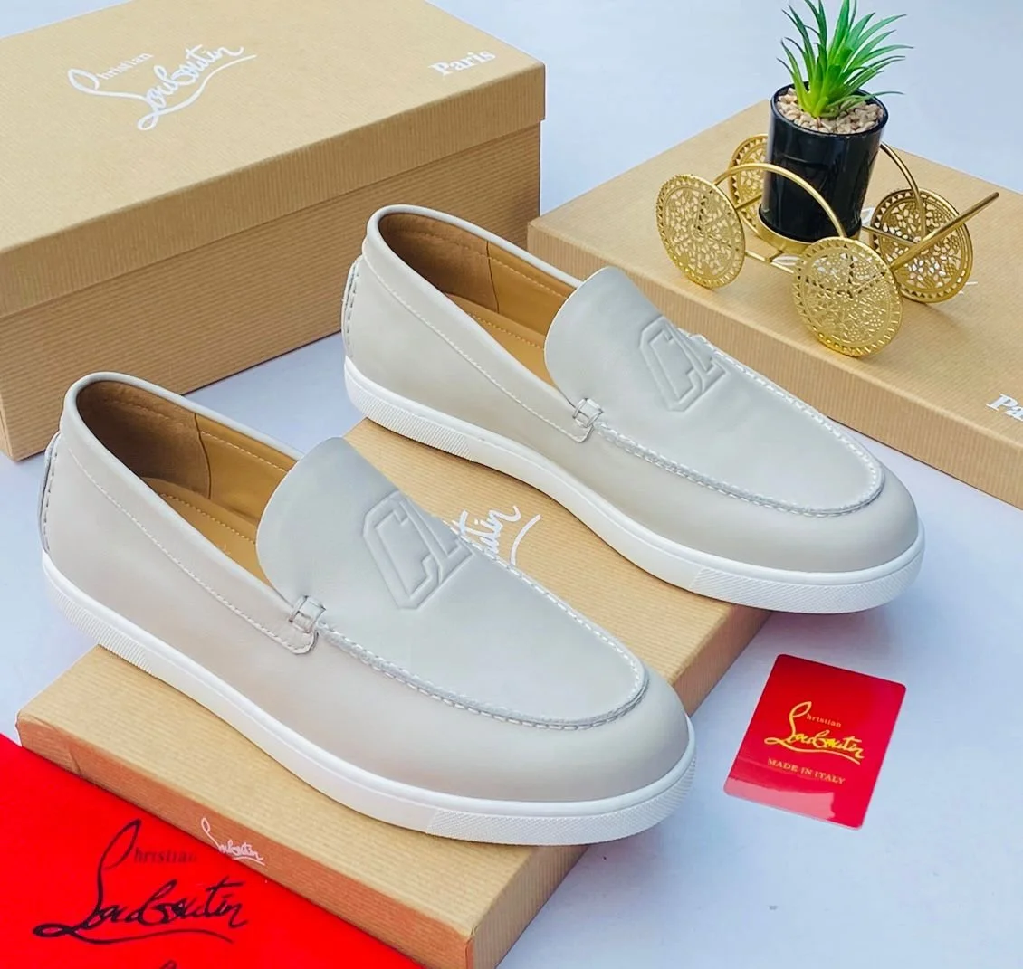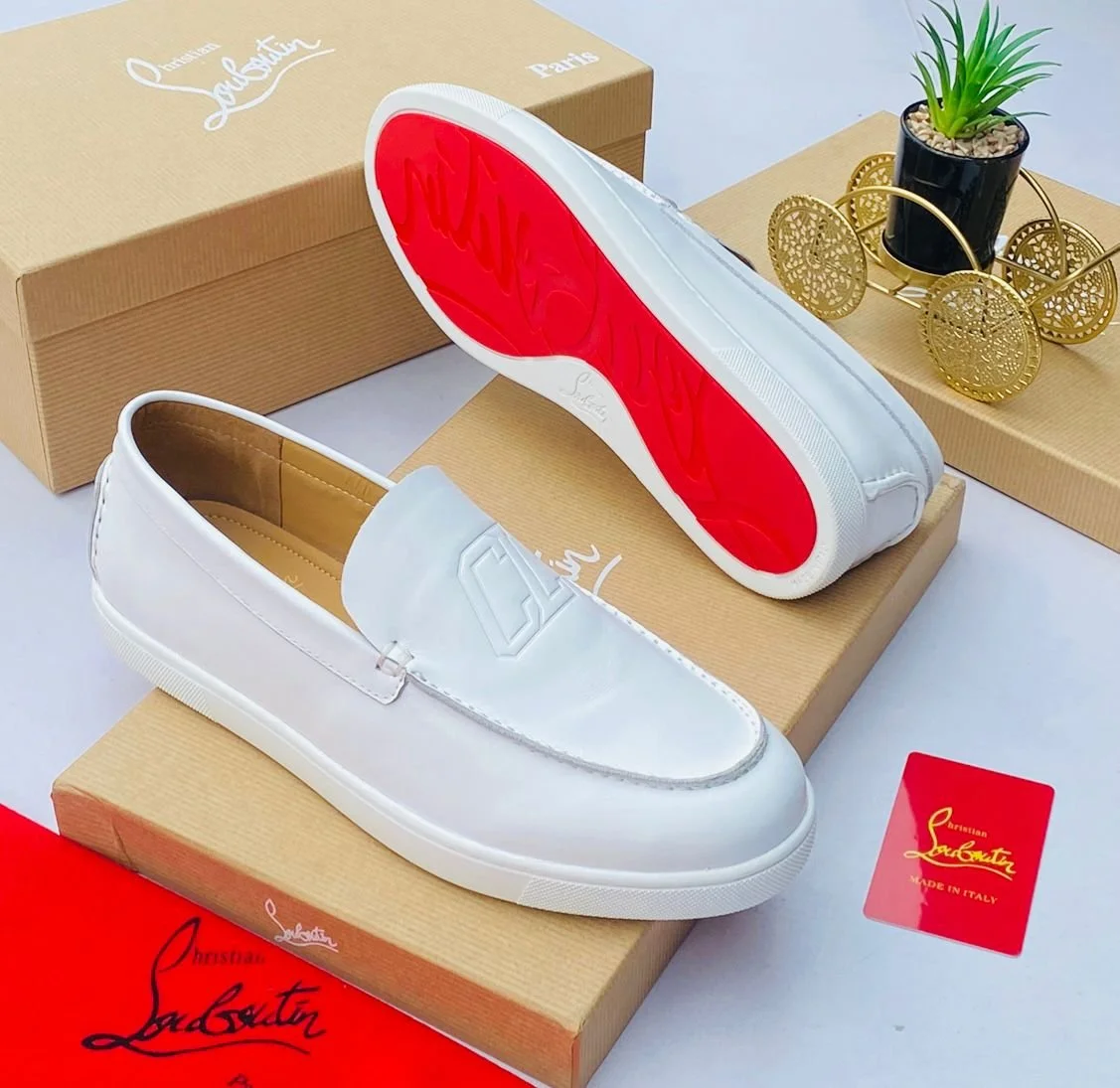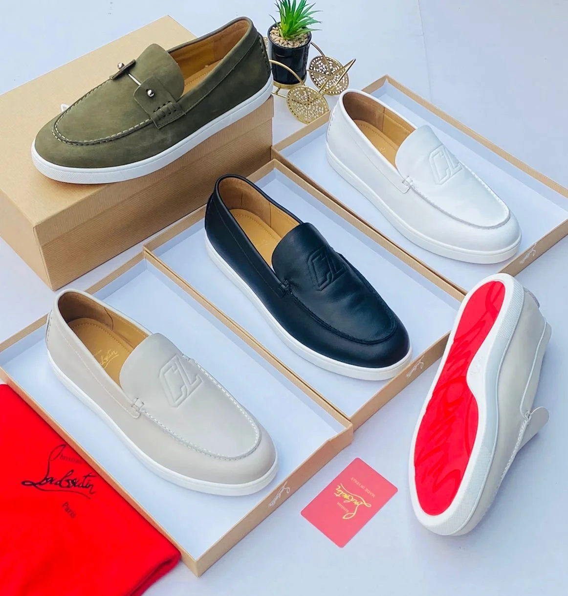 New Christian Louboutin Luxury Italian leather Loafers comfortable outerwear//Available Colors: White ๐ค Navy Blue ๐Off-white