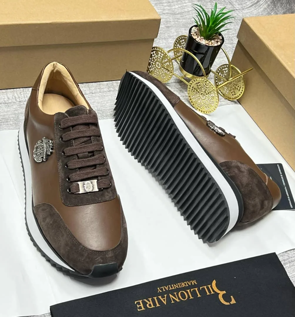 Billionaire Sneakers brown Suade low-top white sole brown Italian leather shoe; comfortable walking and running shoe
