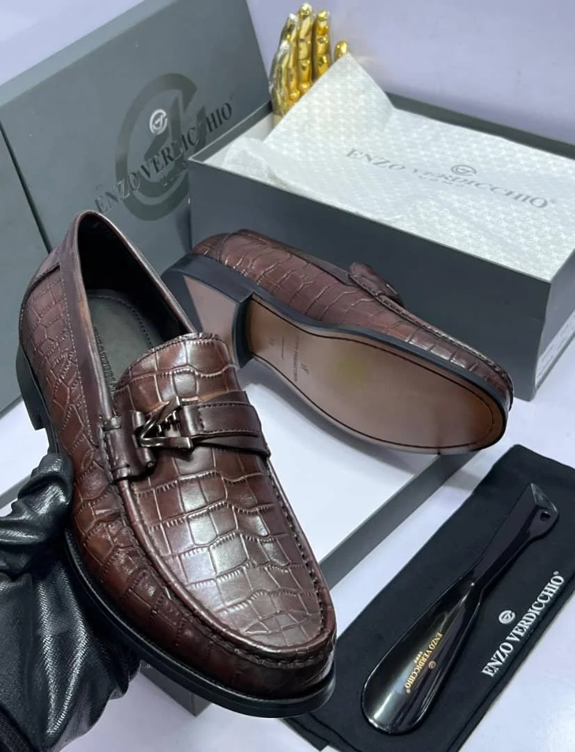 Enzo VERDICCHIO loafer brown crocodile π Italian leather flat-style loafer