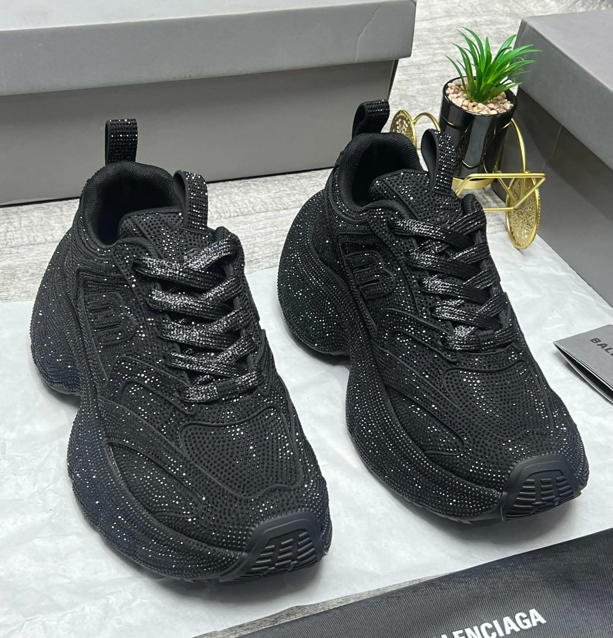 BALENCIAGA Sneakers bedazzled black Low-Top sneaker training; Fashion sneaker comfortable walking shoe