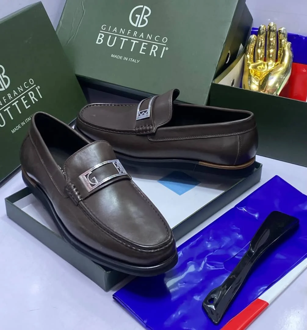 GIANFRANCO BUTTERI loafers Italian leather stylish flat shoe ; colors brown 🤎 Black 🖤