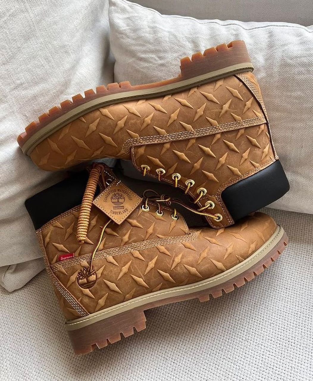 Designer Timberland Boots by Supreme rare available in Nubuck Suade and Black Leather fashion boots