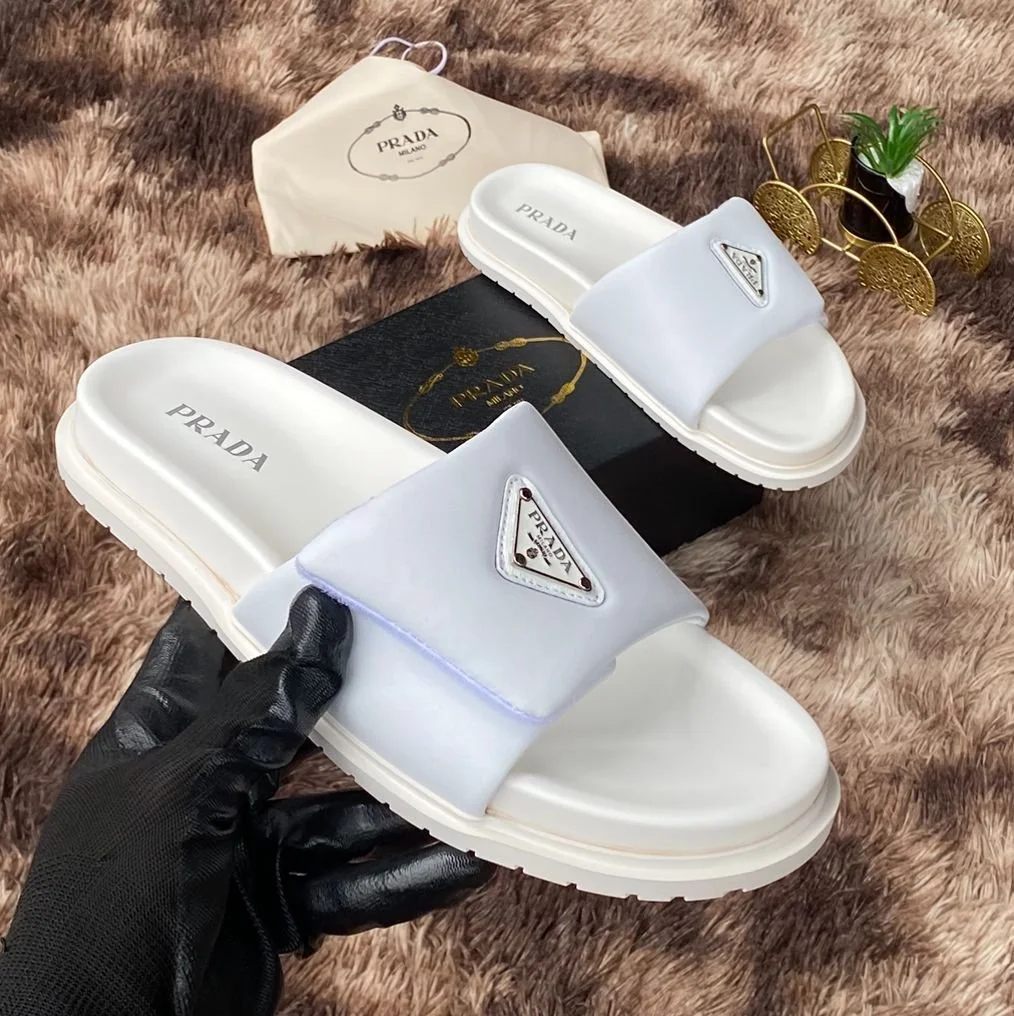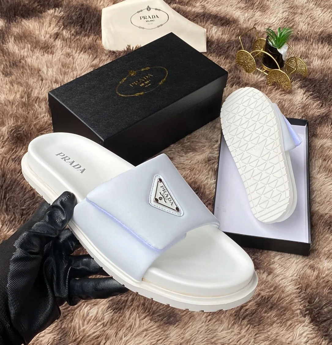 Elite Flight Designer Fashion Outlet › Prada Slippers Image 1 of 2 Image 2 of 2 Prada Slippers $309.99 White Italian leather Prada Slippers comfortable; quality leather white Available Sizes: UK 40 — UK 46 Quantity: Add To Cart Added! White Italian leather Prada Slippers comfortable; quality leather white Available Sizes: UK 40 — UK 46