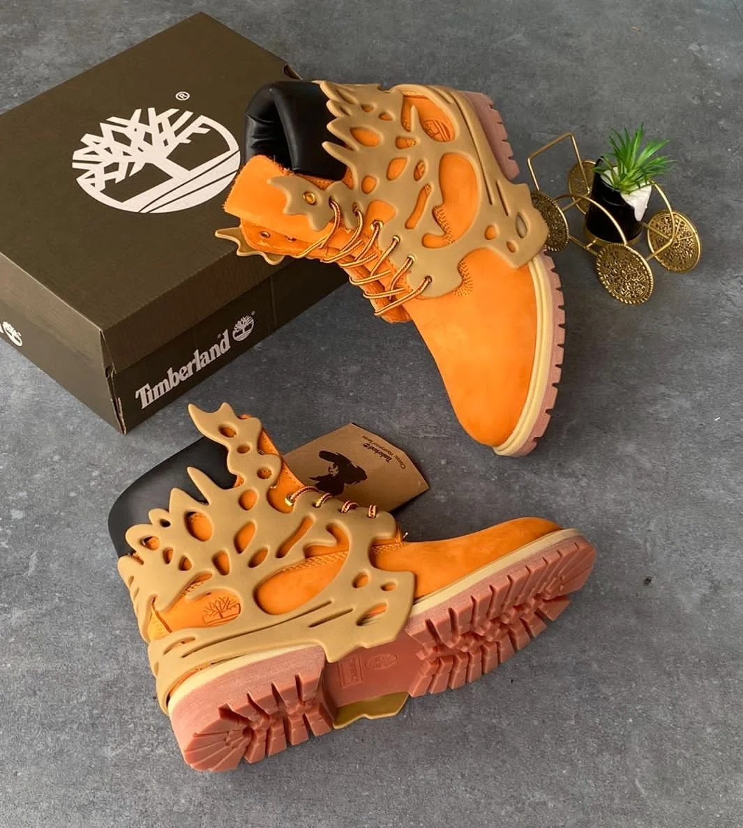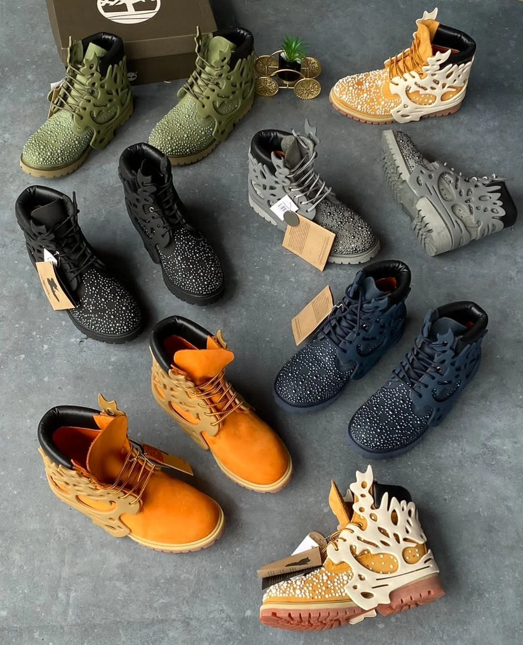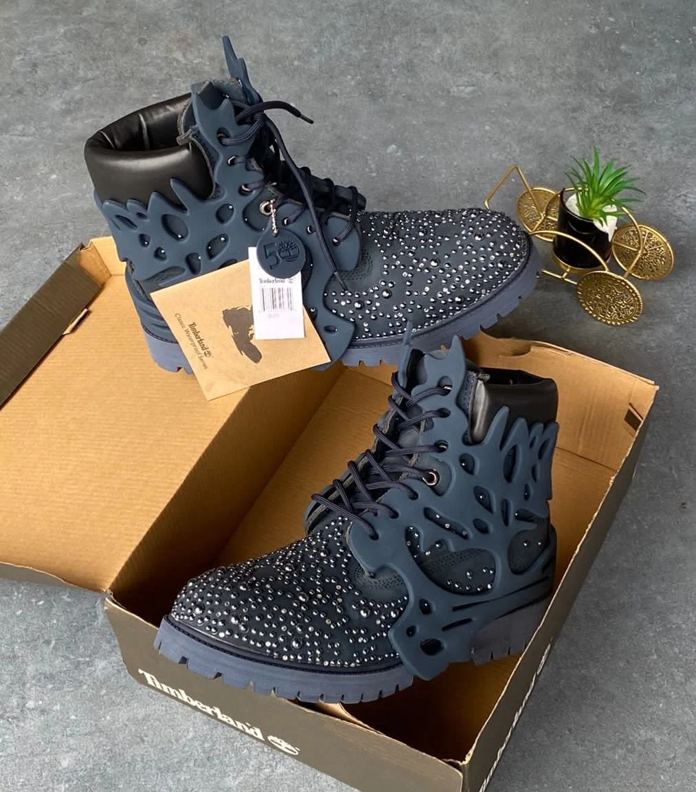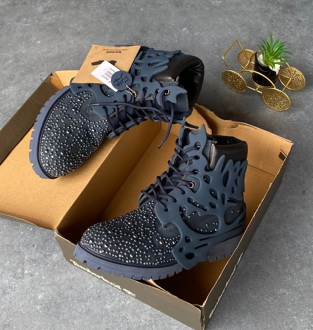 Beeline 🐝 Timberland Trending Designer Fashion boot Timberland logo tree trimming color of boot, bedazzled pearl white or Pearl coloring of boot RARE Designer Fashion 😍