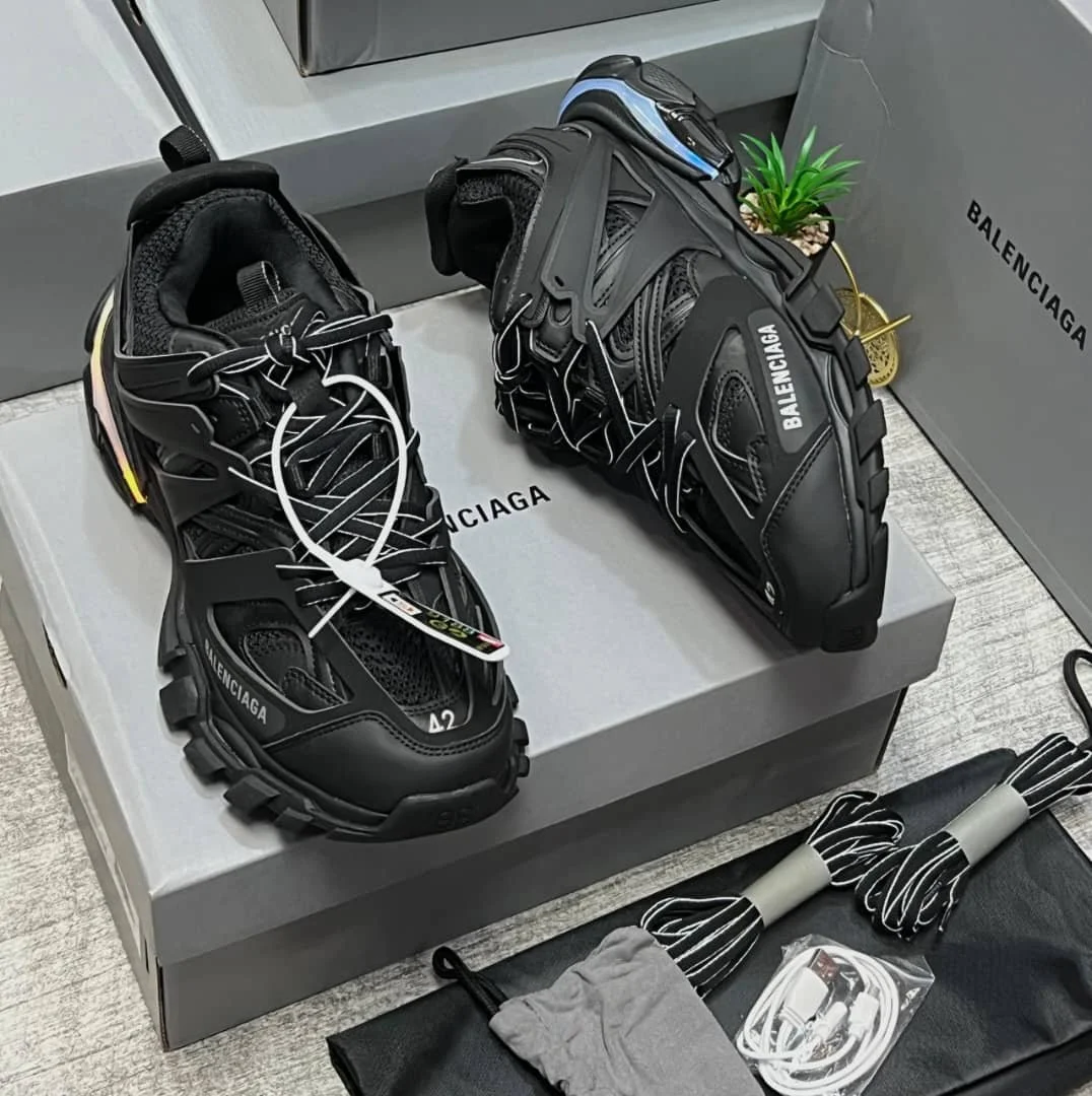 Balenciaga Running Shoe black with lighting led changing pattern in rear sole black Italian leather sneaker