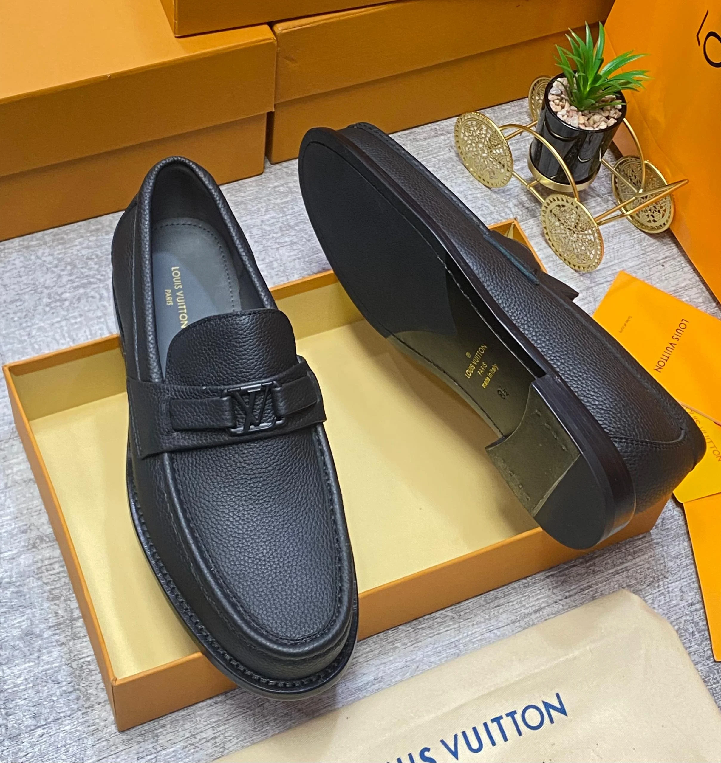 Louis Vuitton Loafers Black flat-style comfortable walking shoe LV New Design; Italian loafers black