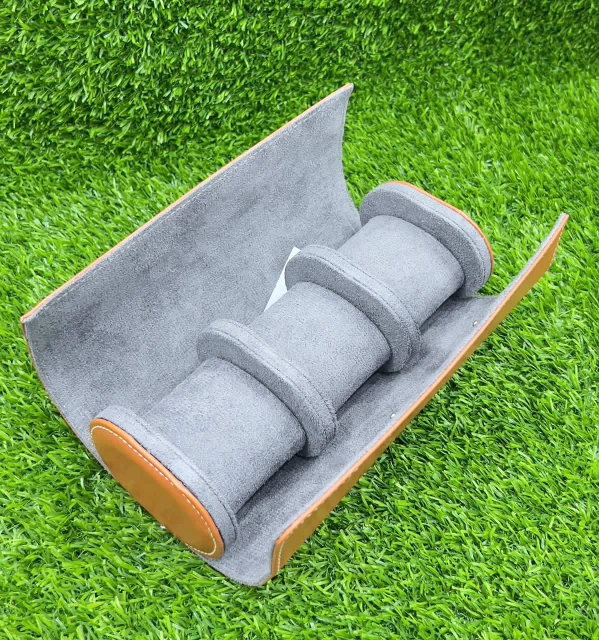 3 space Wristwatch holder with button closing leather Wristwatch protection durable leather case