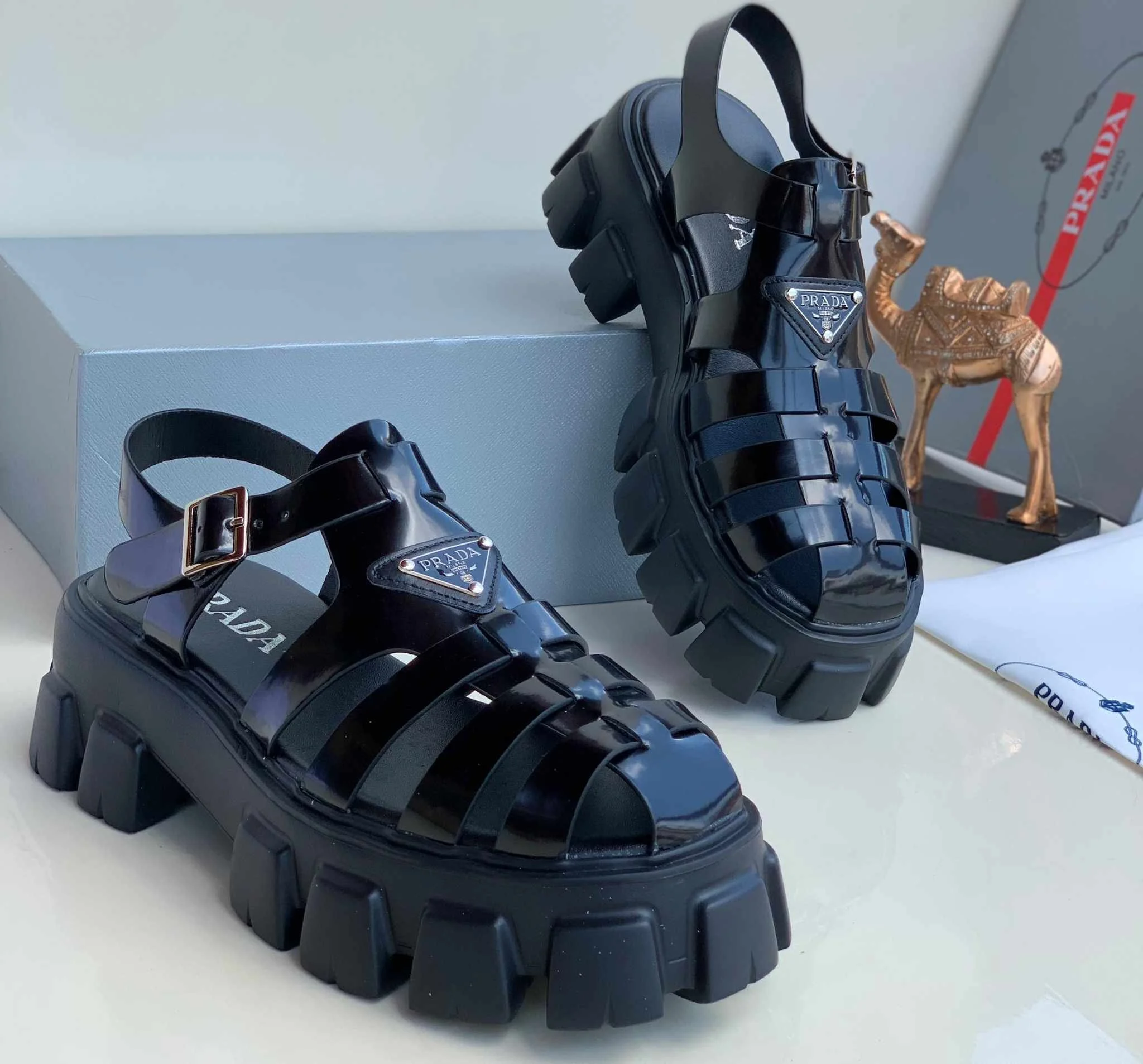 Elite Flight Designer Fashion Outlet › Prada Sandals Image 1 of 1 Prada Sandals $189.99 Designer Sandles Luxury casual Sandler Big Sole Avail Sizes 40-46 regular fitting Prada Sandal. Quantity: Add To Cart Added! Designer Sandles Luxury casual Sandler Big Sole Avail Sizes 40-46 regular fitting Prada Sandal.