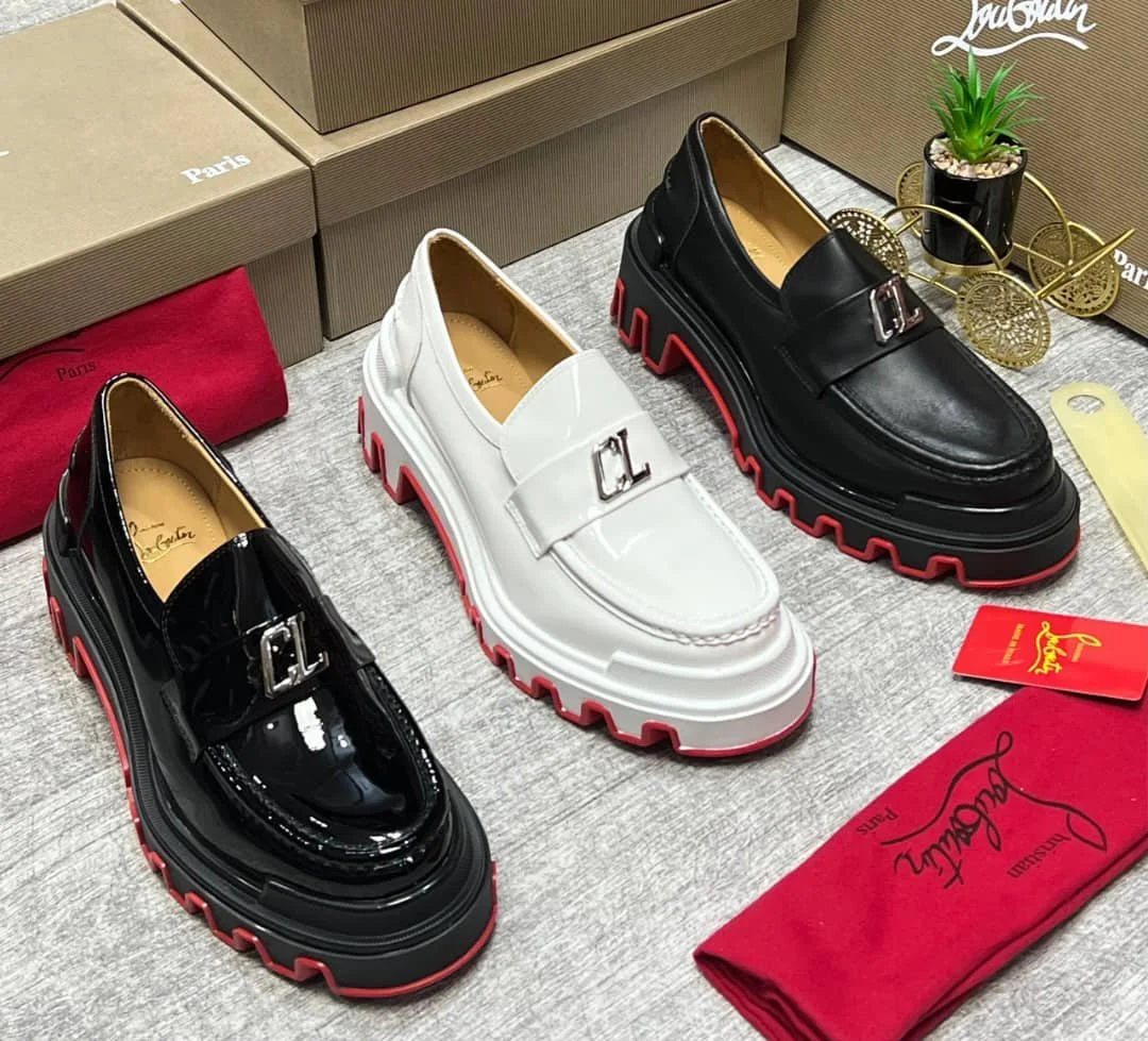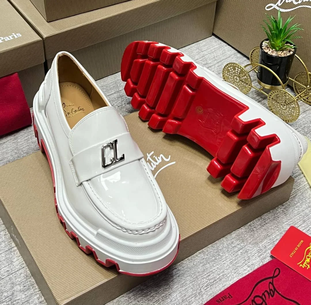 White padded leather Red-Bottom Christian Louboutian Loafer