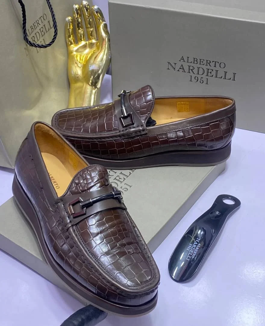 Designer Loafer Italian shoe Alberto Nardelli brown crocodile loafer