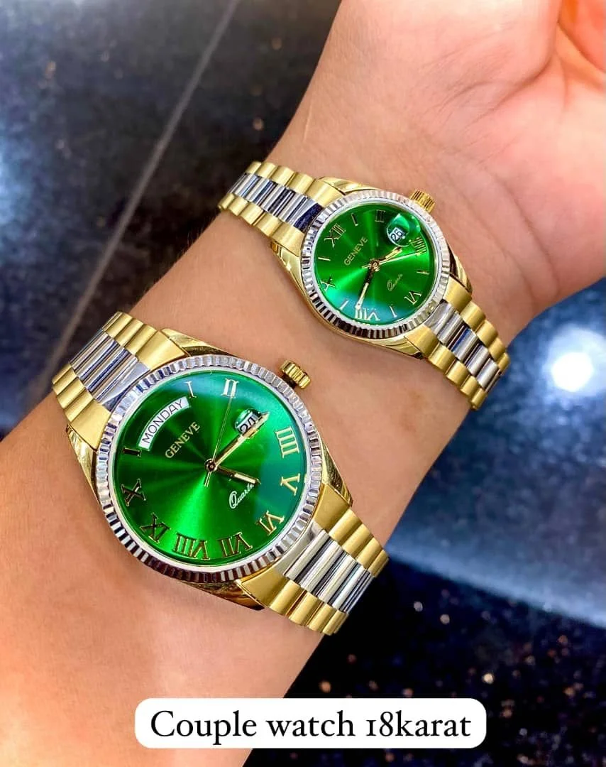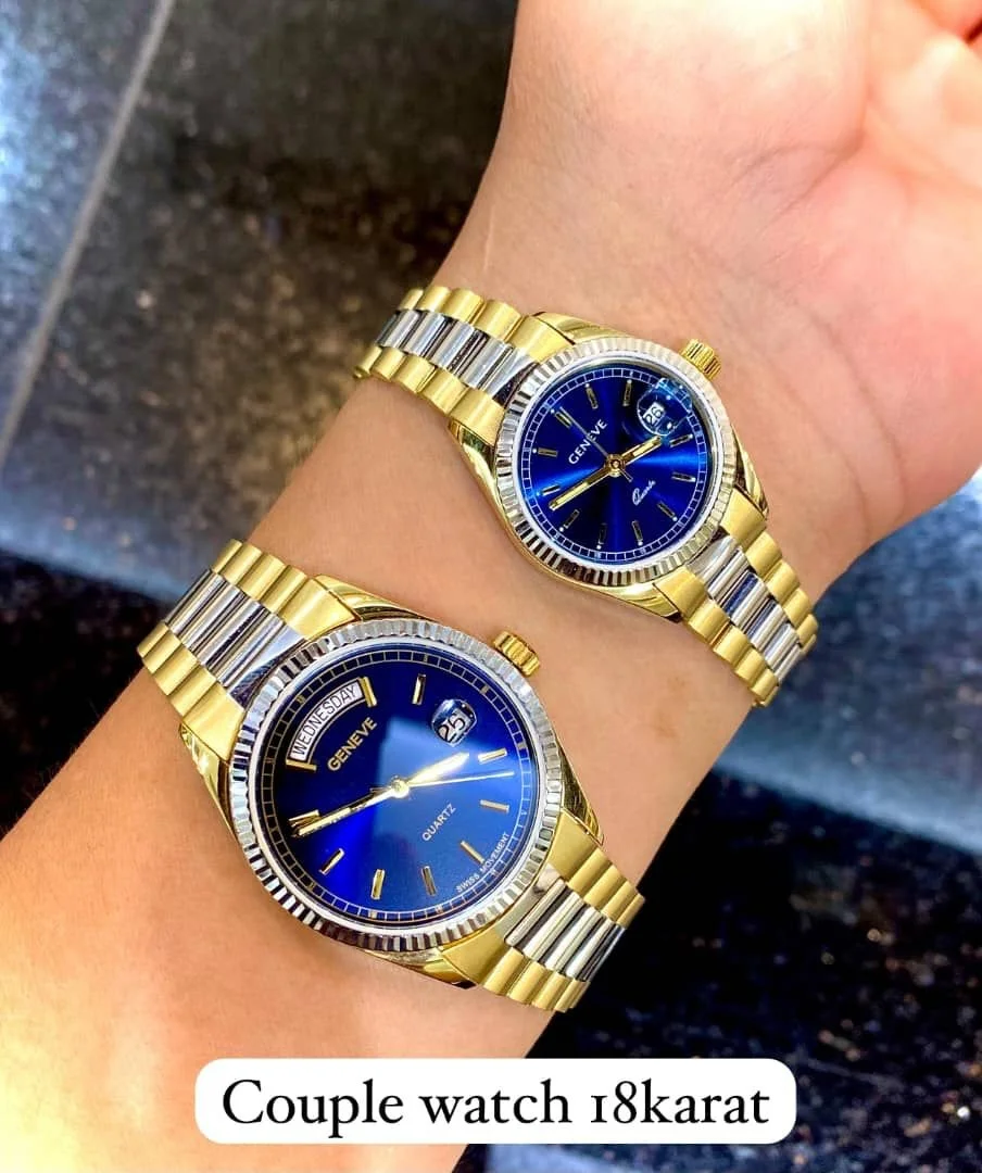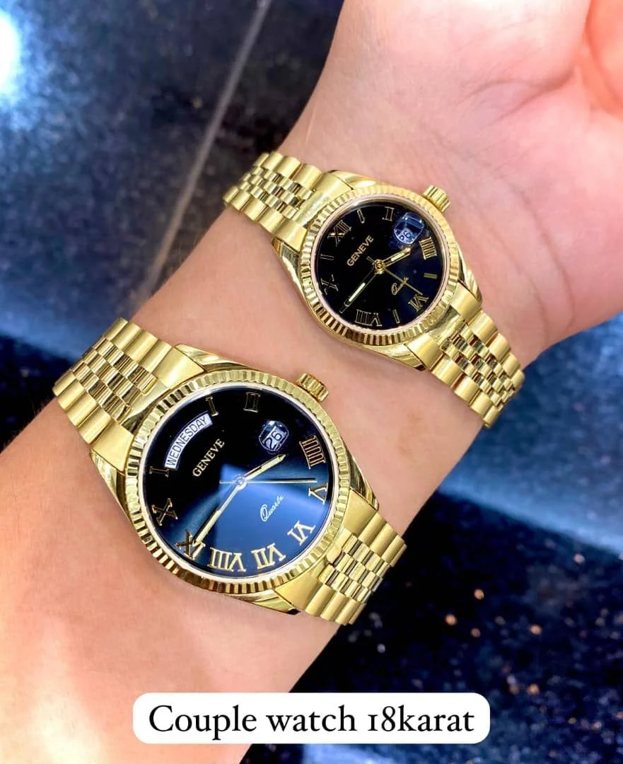 GENEVE His and Hers Wrist Watch Luxury Designer Fashion quality 18k Gold Timepiece, available link sizing