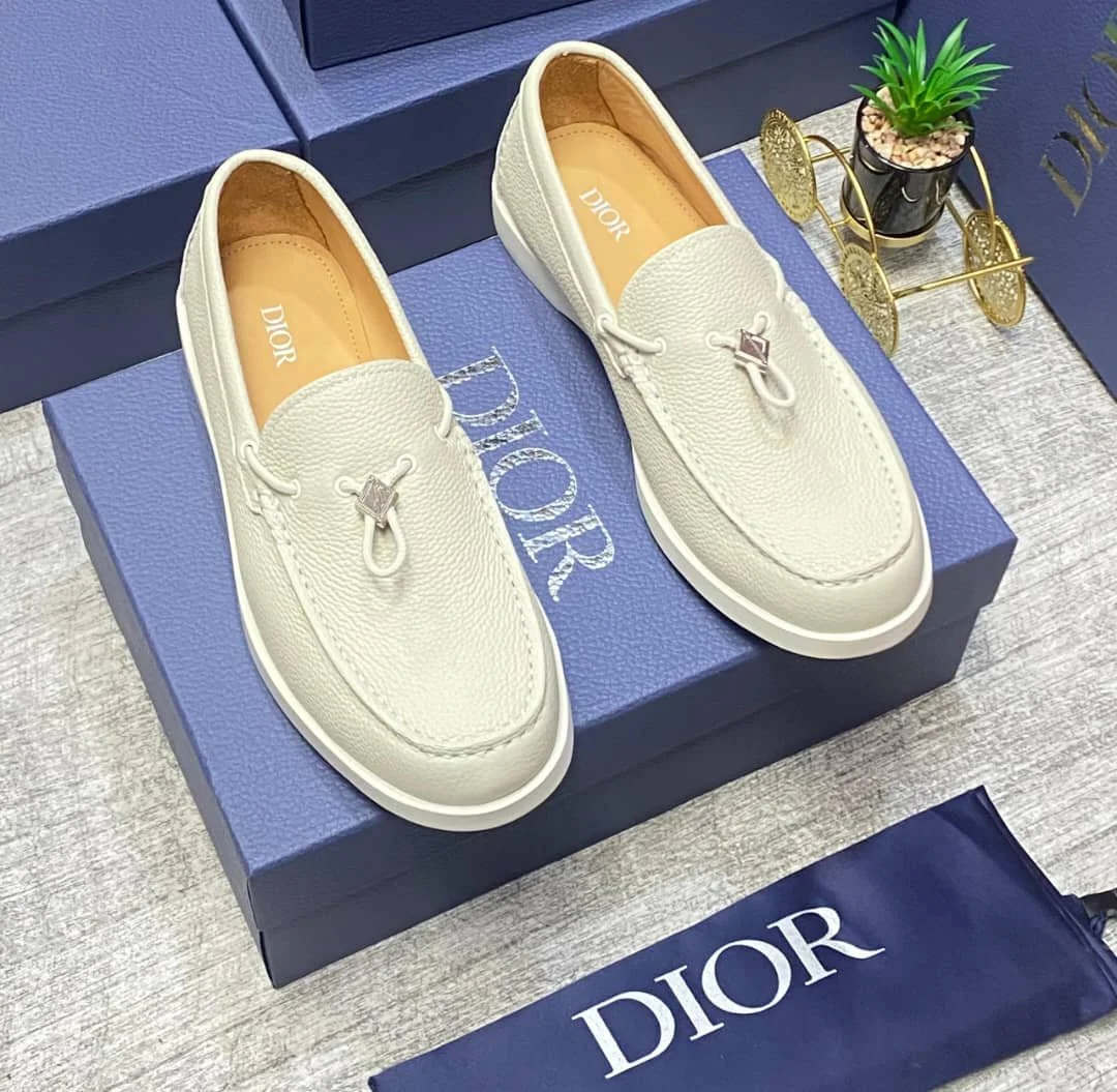 Christian Dior Loafers Italian Leather white flat style comfortable walking dress shoe