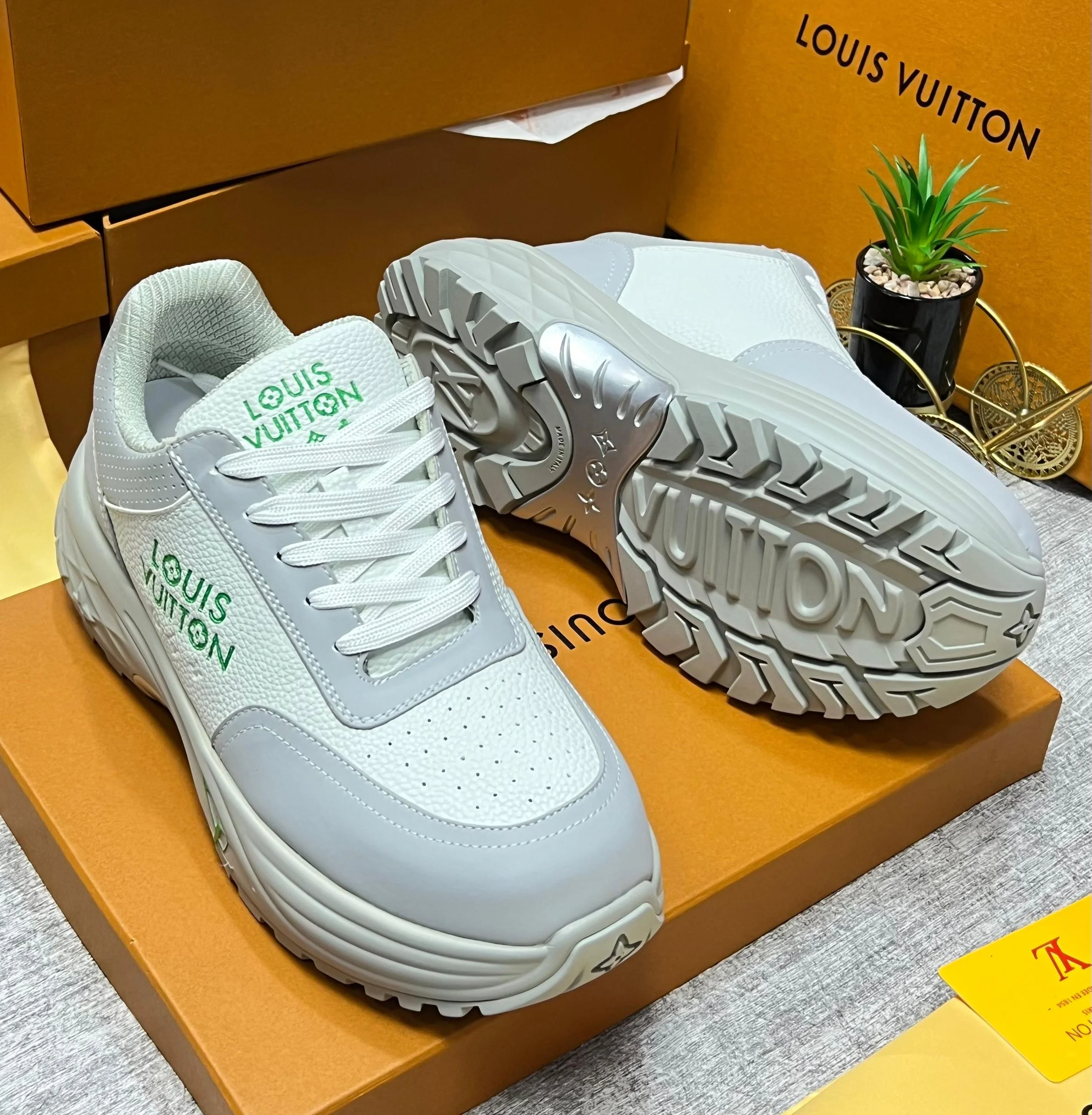 Louis Vuitton Sneakers white Italian leather ;grey Suade with LV monogram green