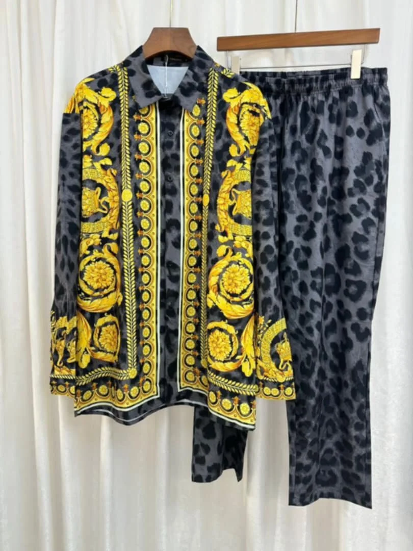 Designer Gold and grey designer pattern with cheetah print grey pants set 2 PC. Comfortable outerwear