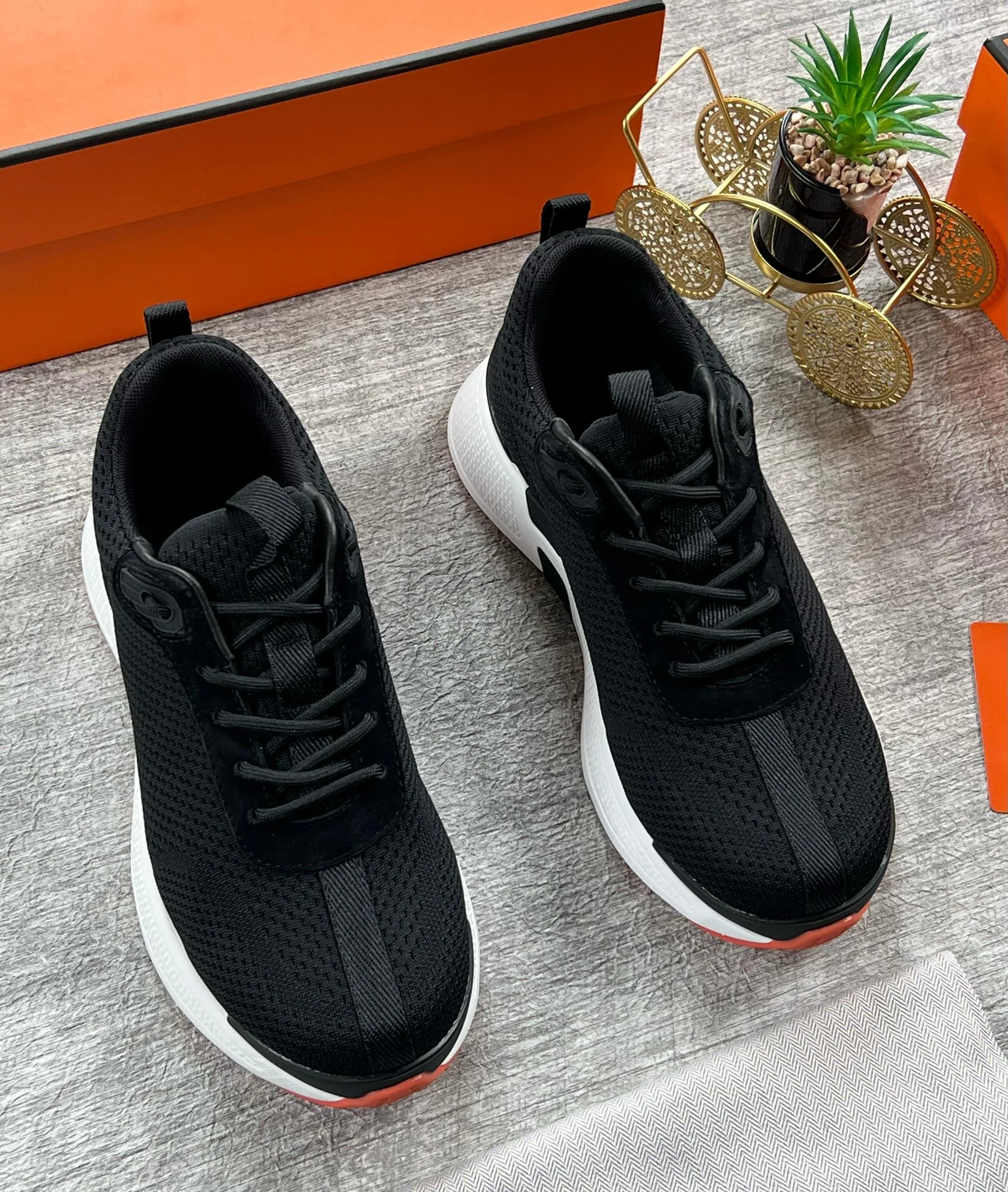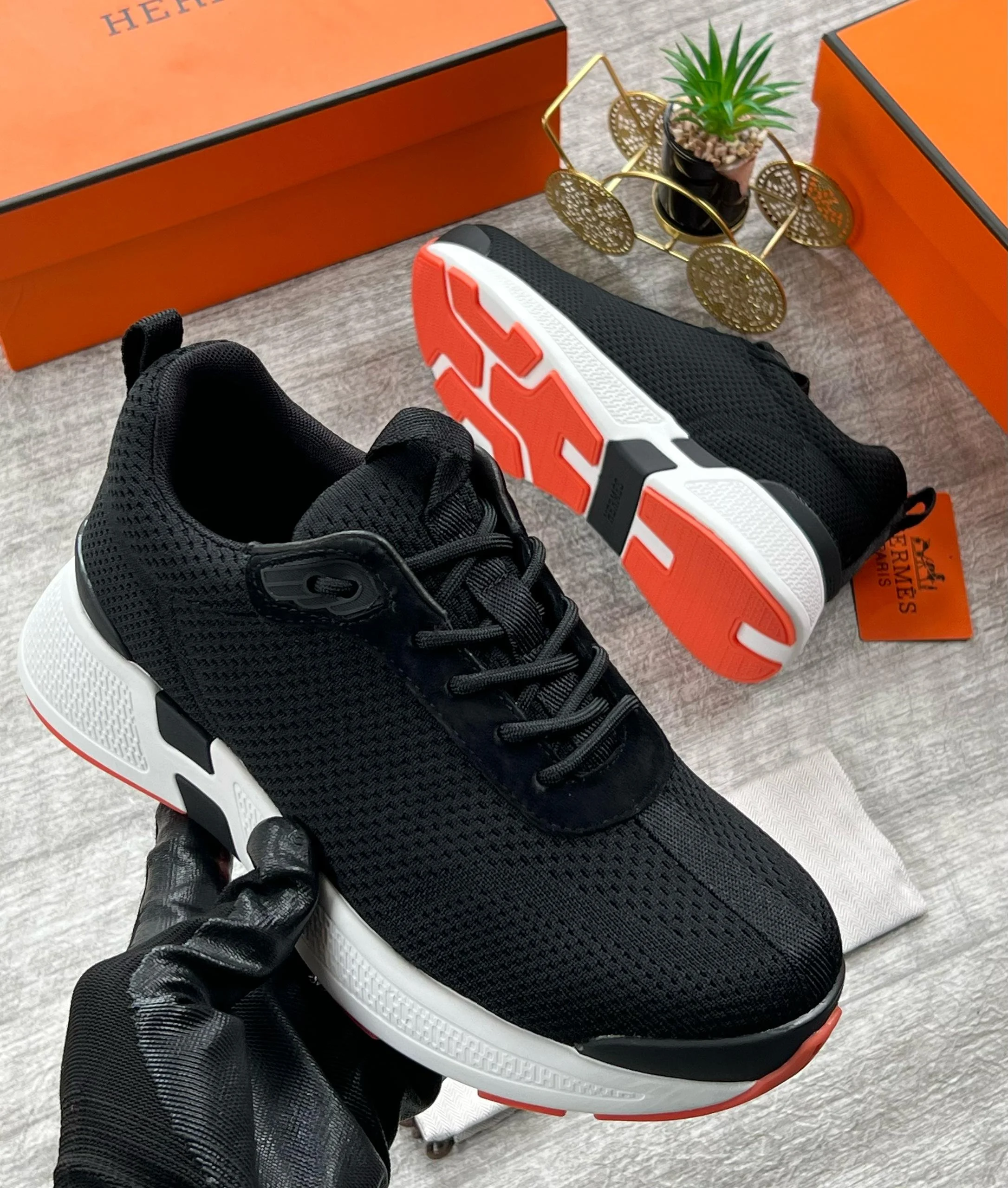 Hermes Sneakers Black white/brn. sole Authorization designer sneakers