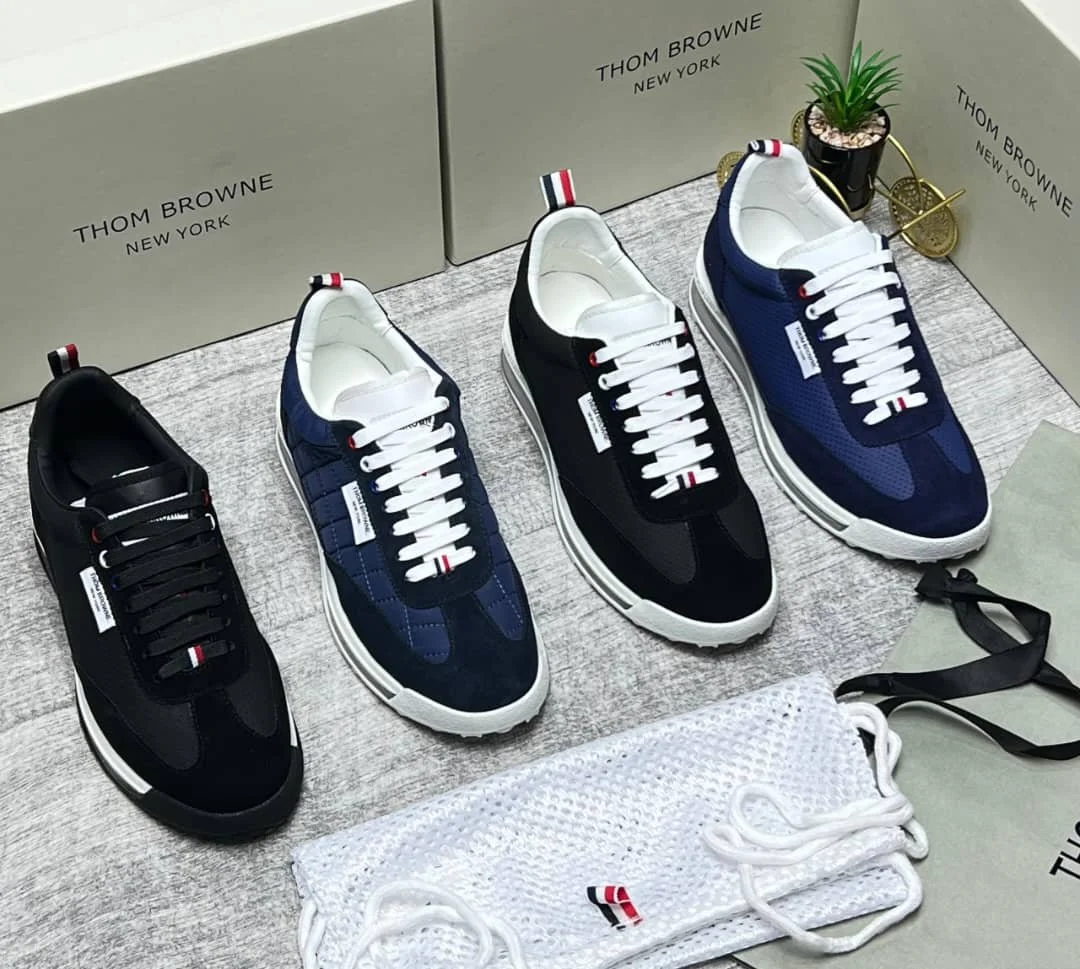THOM BROWN Sneakers available in various colors. Blk. Low-Top sneaker Italian leather , silk shoe with clear bottom red/wht/blue signature clear sole comfortable walking ; Outerwear designer fashion.