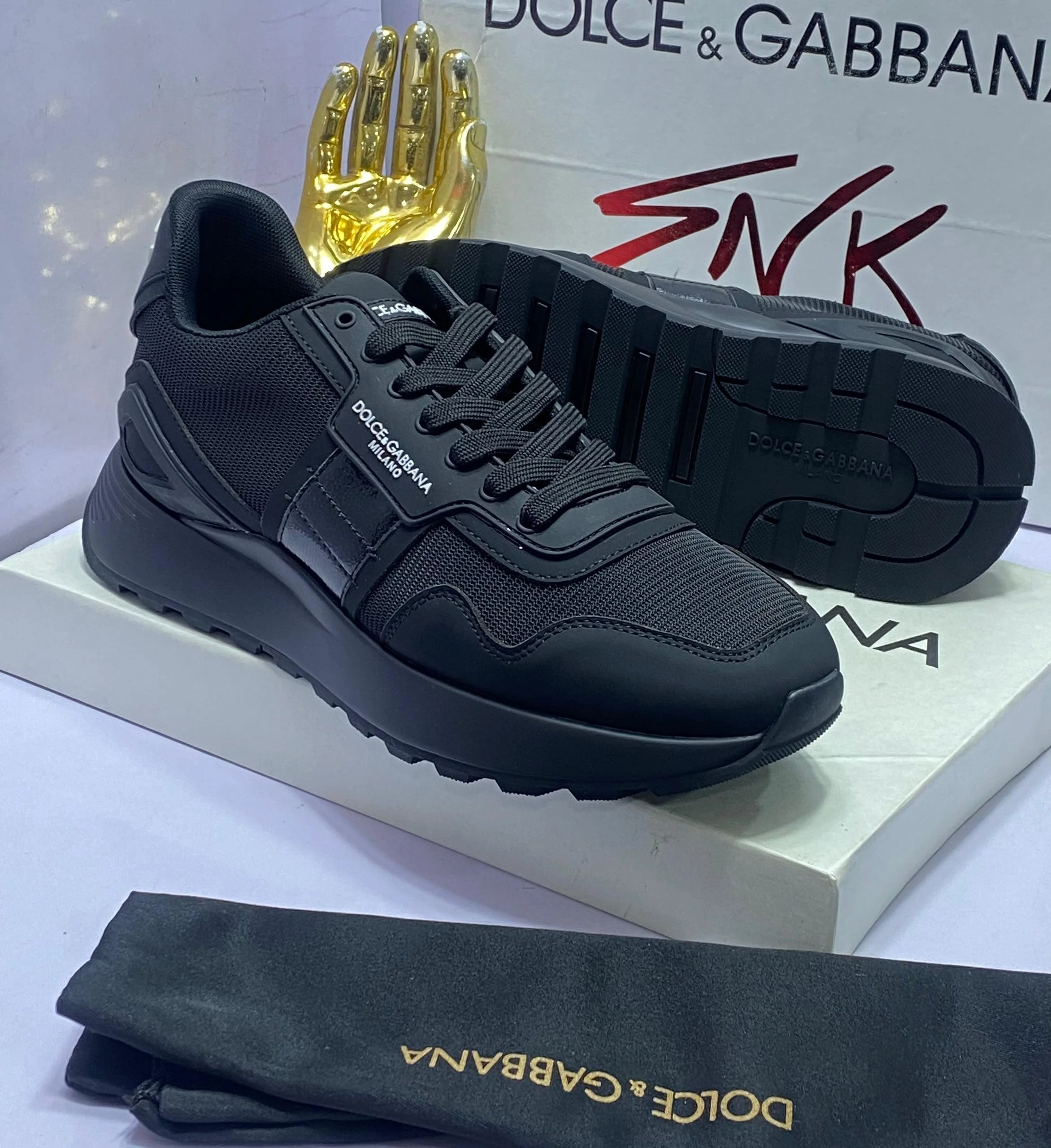 Dolce and Gabanna Black sneakers designer shoes D and G comfortable walking shoe Blk. With Blk. lace
