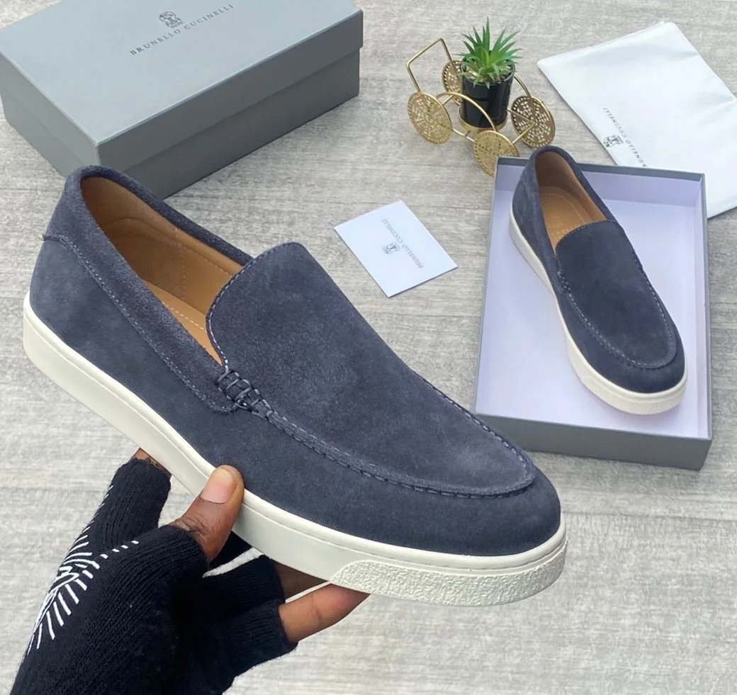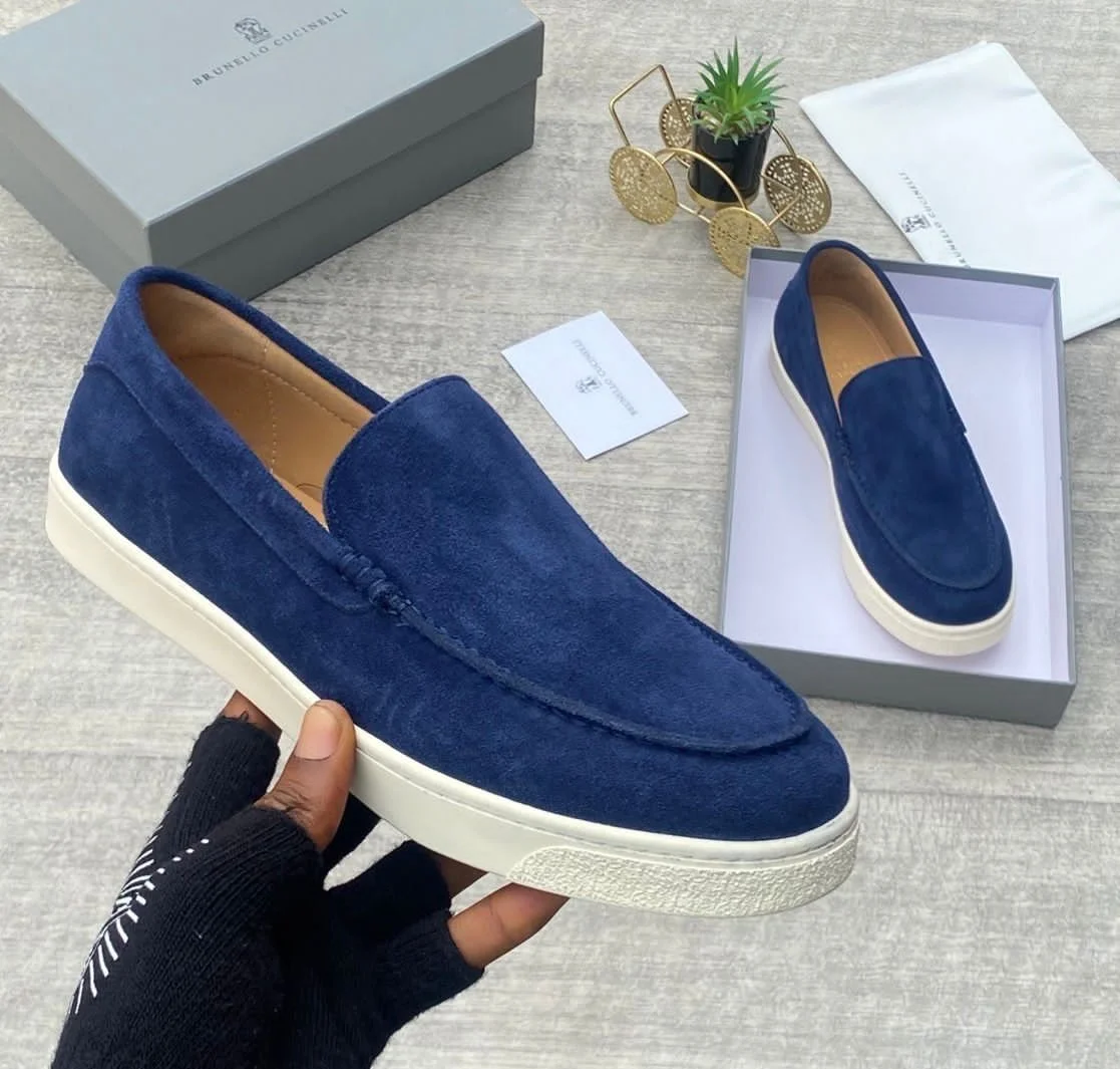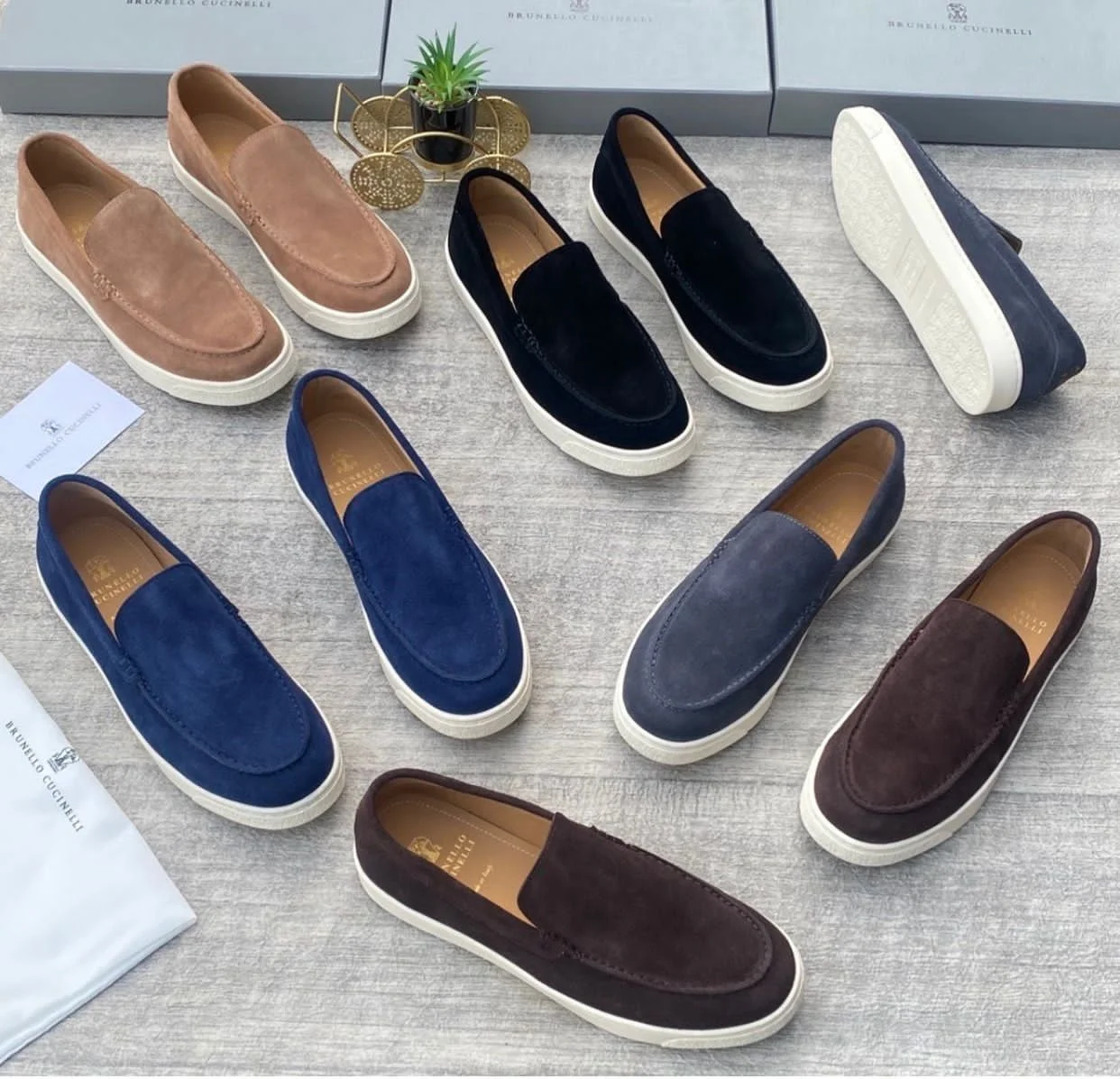 Brunello Cucinelli Loafers Suade Flat-style Shoe ๐ Available in Various Trending Colors//Blue ๐ Brown ๐ค Black ๐ค Tan ๐งก Available Sizes: UK 39 --UK 46