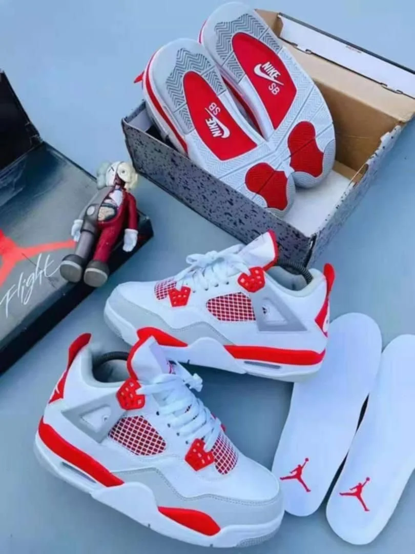 Air Jordan Retro 4 white/red/grey color basketball sneaker Available Sizes UK 39 -UK 45 New Release for sizing before shipment or color exchange