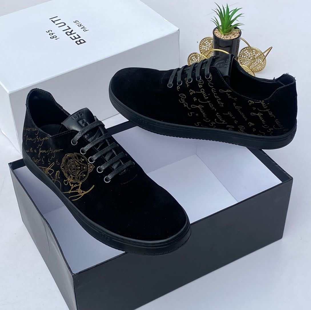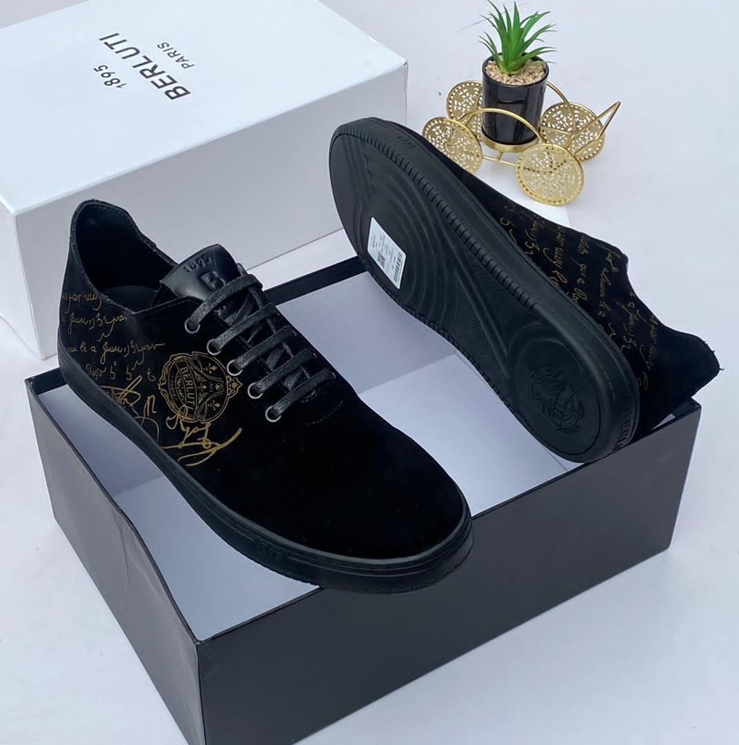 Elite Flight Designer Fashion Outlet › Bertuli Flat-style Shoe Image 1 of 2 Image 2 of 2 Bertuli Flat-style Shoe $389.99 Designer Suade BERLUTI with gold trimming logo; black suadeAvailable Sizes: UK 39 UK 40 UK 41 UK 42 UK43 UK44 UK45 UK46 Quantity: Add To Cart Added! Designer Suade BERLUTI with gold trimming logo; black suadeAvailable Sizes: UK 39 UK 40 UK 41 UK 42 UK43 UK44 UK45 UK46
