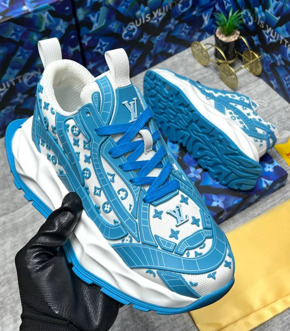 Louis Vuitton Sneakers Low-Top Training show LV Monogram, Colors baby Blue; wht. Comfortable running/walking shoe