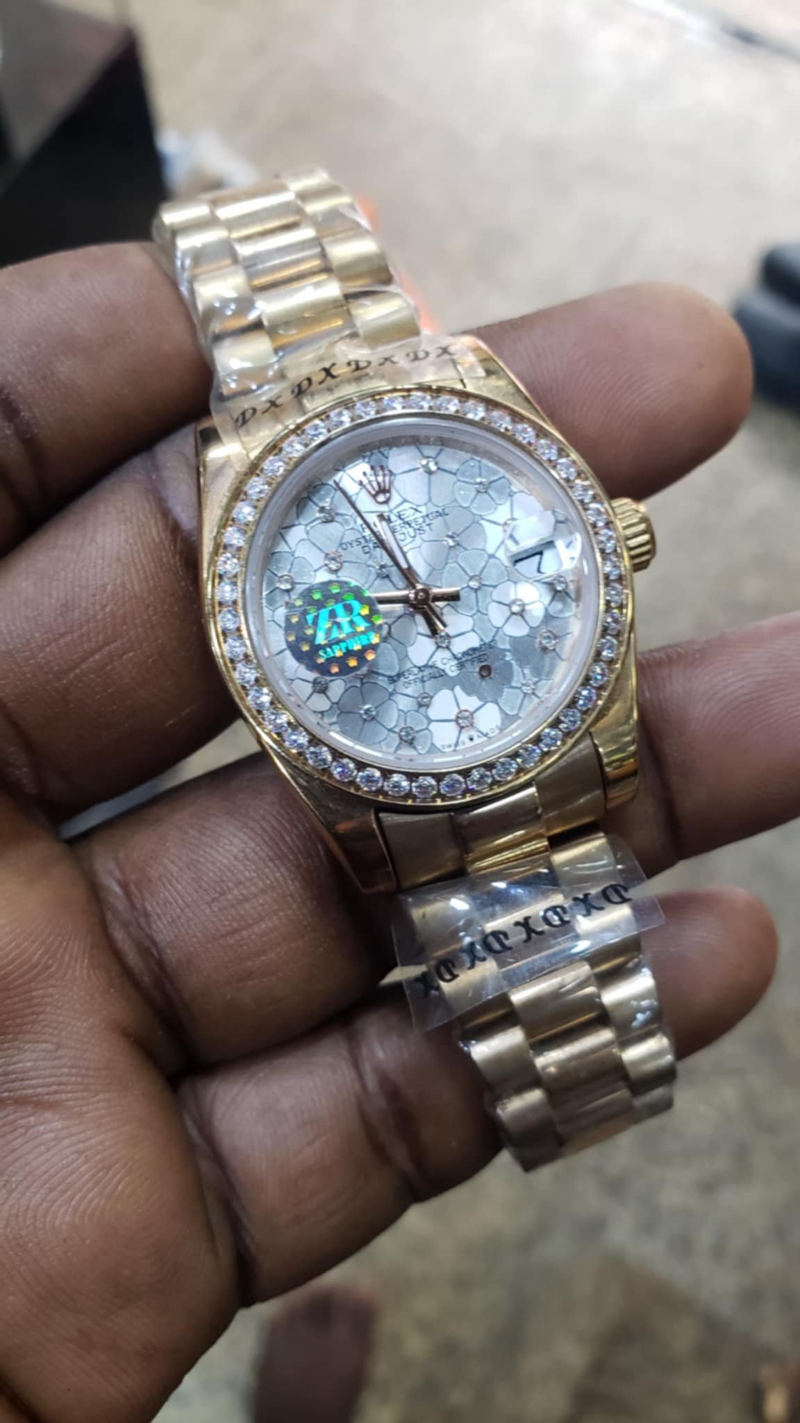 Women's Rolex Oyster Perpetual Silver with Diamond frame flower pattern