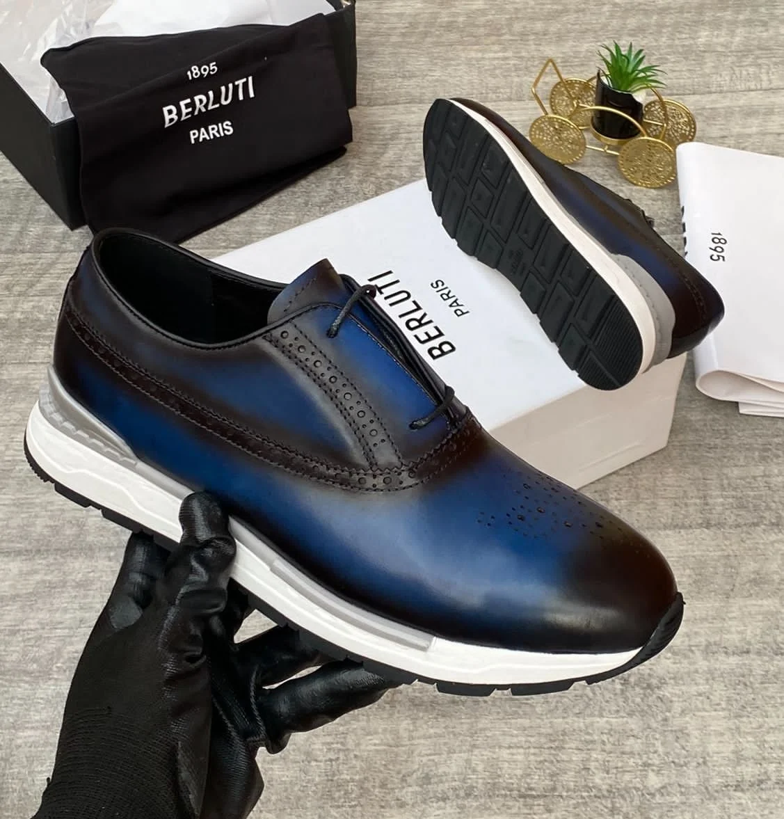 Luxury Berluti Sneakers Low-top Italian Leather//Colors: π€ Black and Navy Blue π΅ Available Sizes//UK 39 - - UK 46