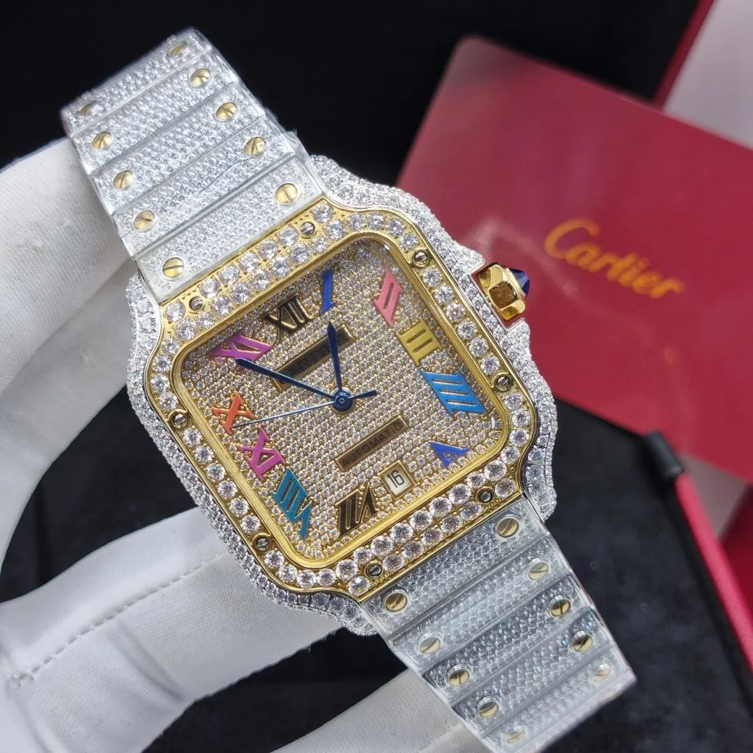 Elite Flight Designer Fashion Outlet › Cartier Wristwatch Image 1 of 2 Image 2 of 2 Cartier Wristwatch $3,599.99 Cartier Wristwatch Roman Numeral colored Iced out elegant Timepiece Quantity: Add To Cart Added! Cartier Wristwatch Roman Numeral colored Iced out elegant Timepiece