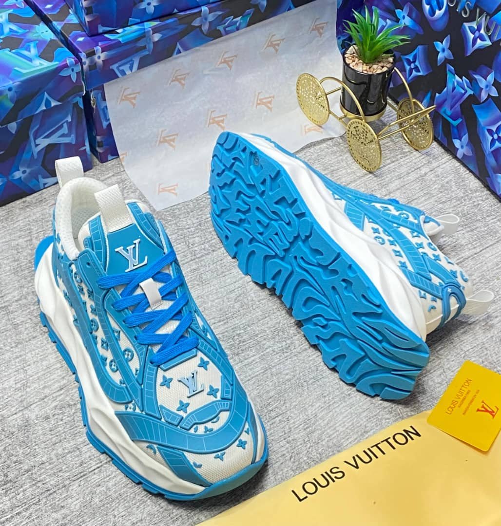 Louis Vuitton Sneakers Low-Top Training Sneakers New Item by LV Italian leather baby blue; white sneaker with LV Monogram comfortable basketball sneaker walking; running