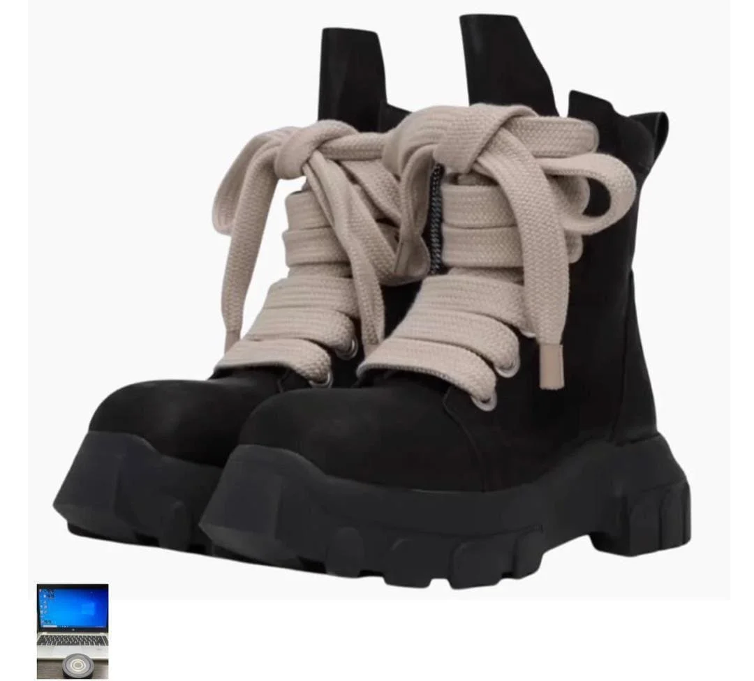 Rick Owens Boots high-top black Italian leather designer boots; big laces