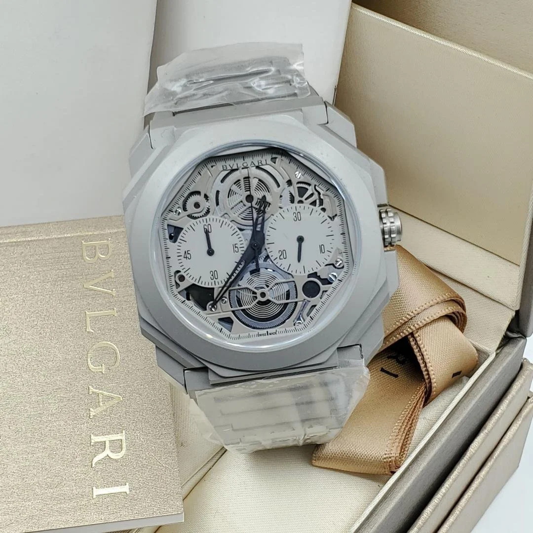 The high performance timepiece is re-owned for its ultra thin profile setting a world record for the thinnest skeleton movement with an automatic winding chronograph and turbulon.