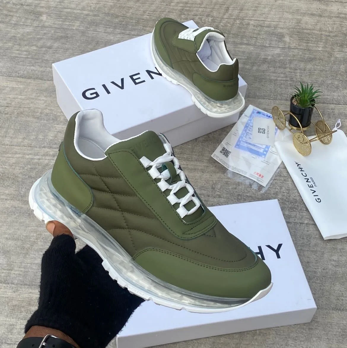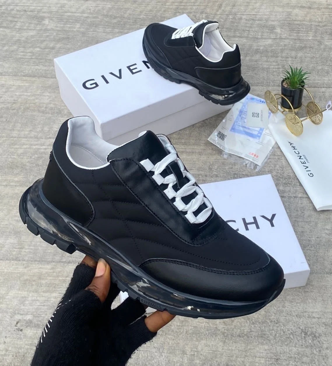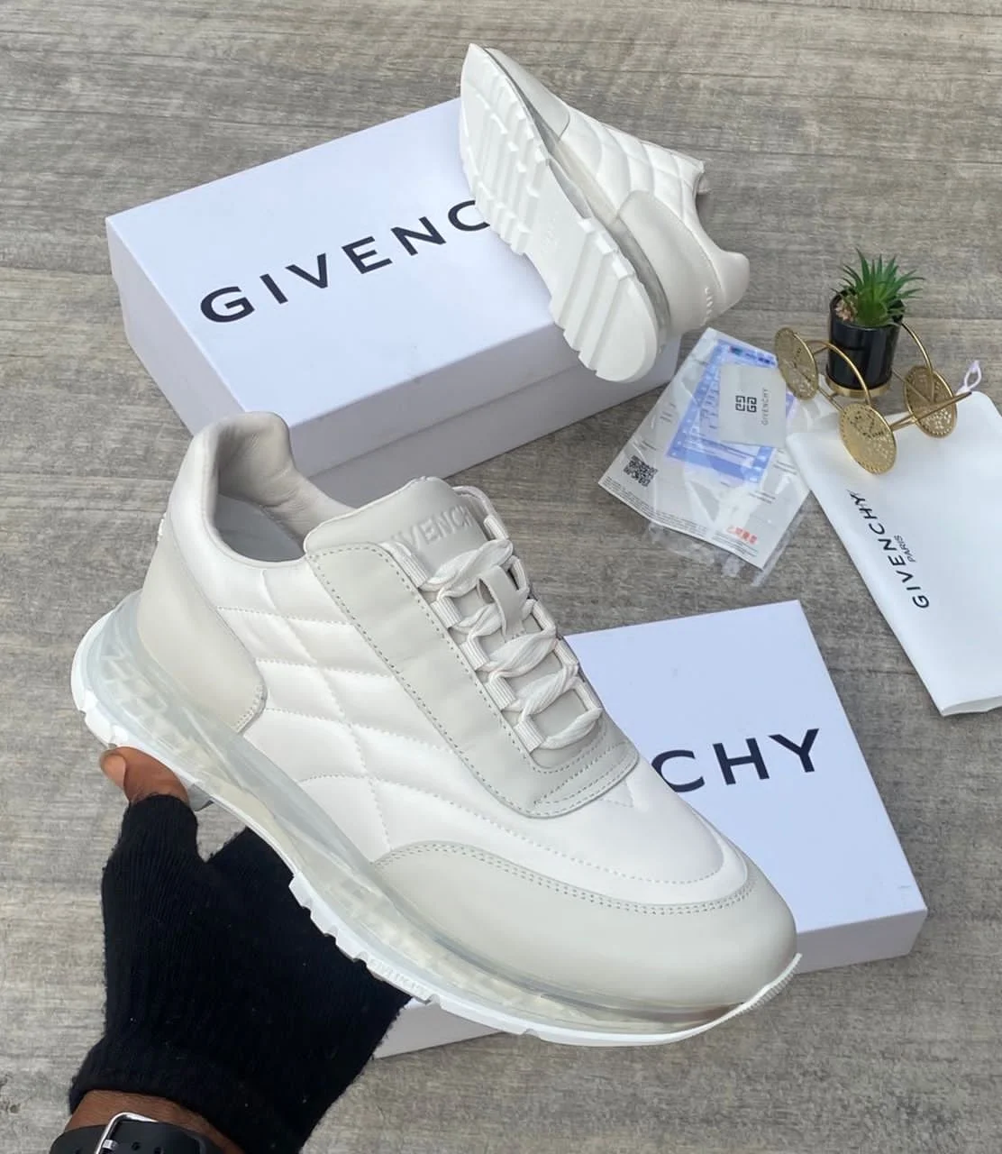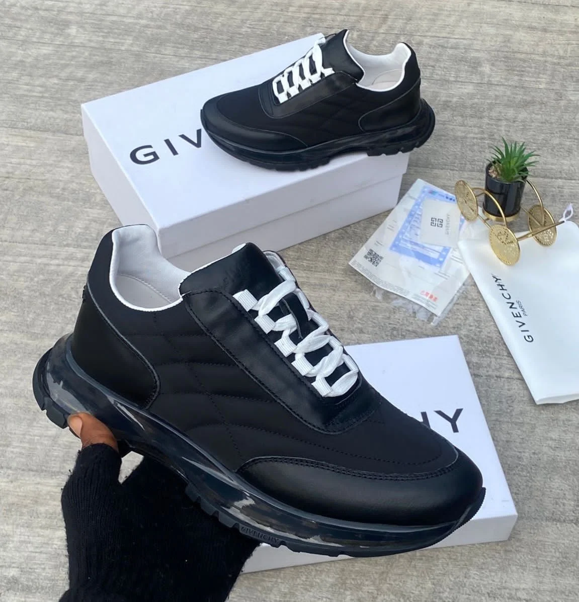 GIVENCHY Low top luxury sneakers based on their prominent elastic strap across the front they are specifically the GIVENCHY City Court Sneakers with elastic band.